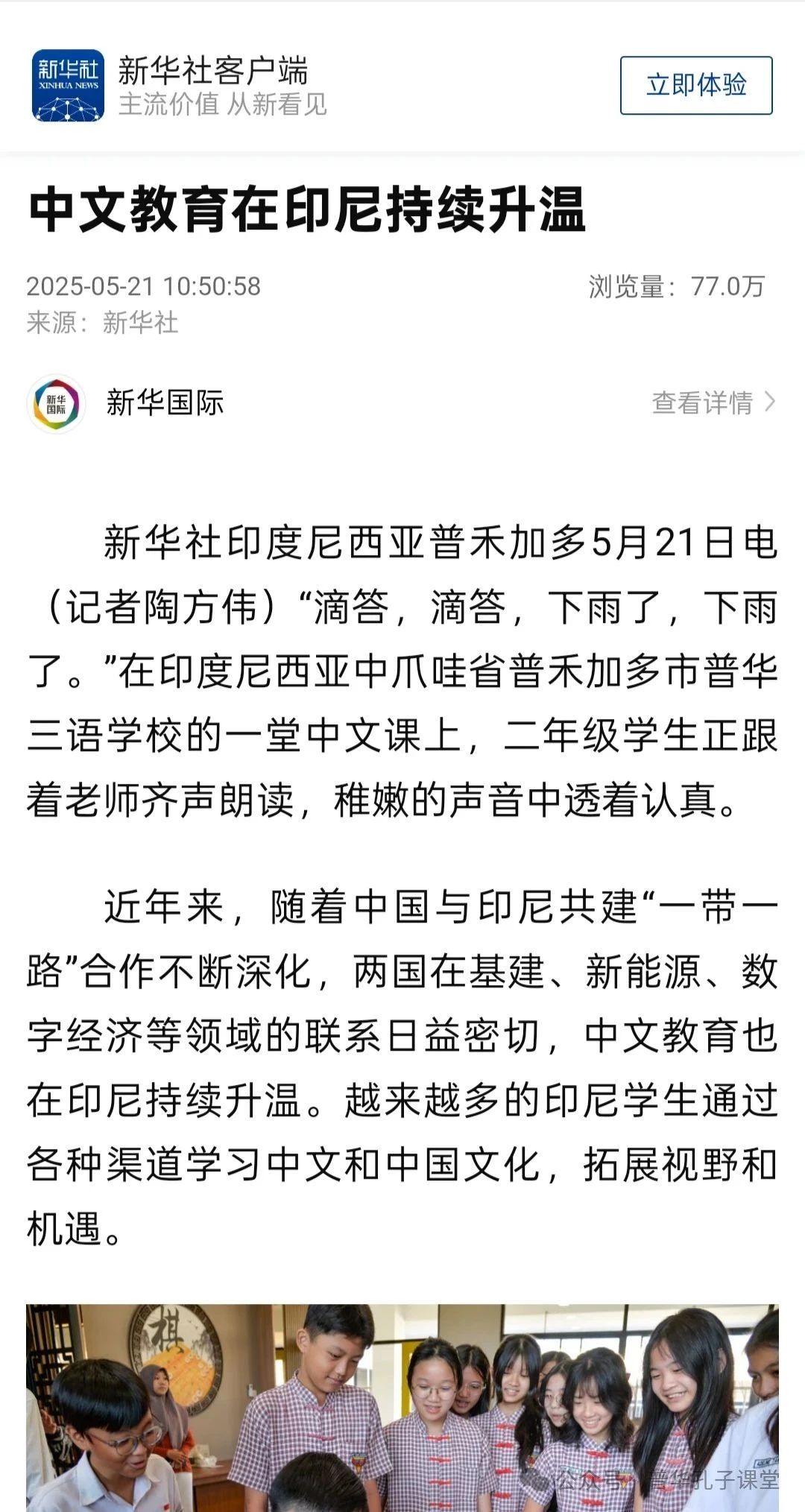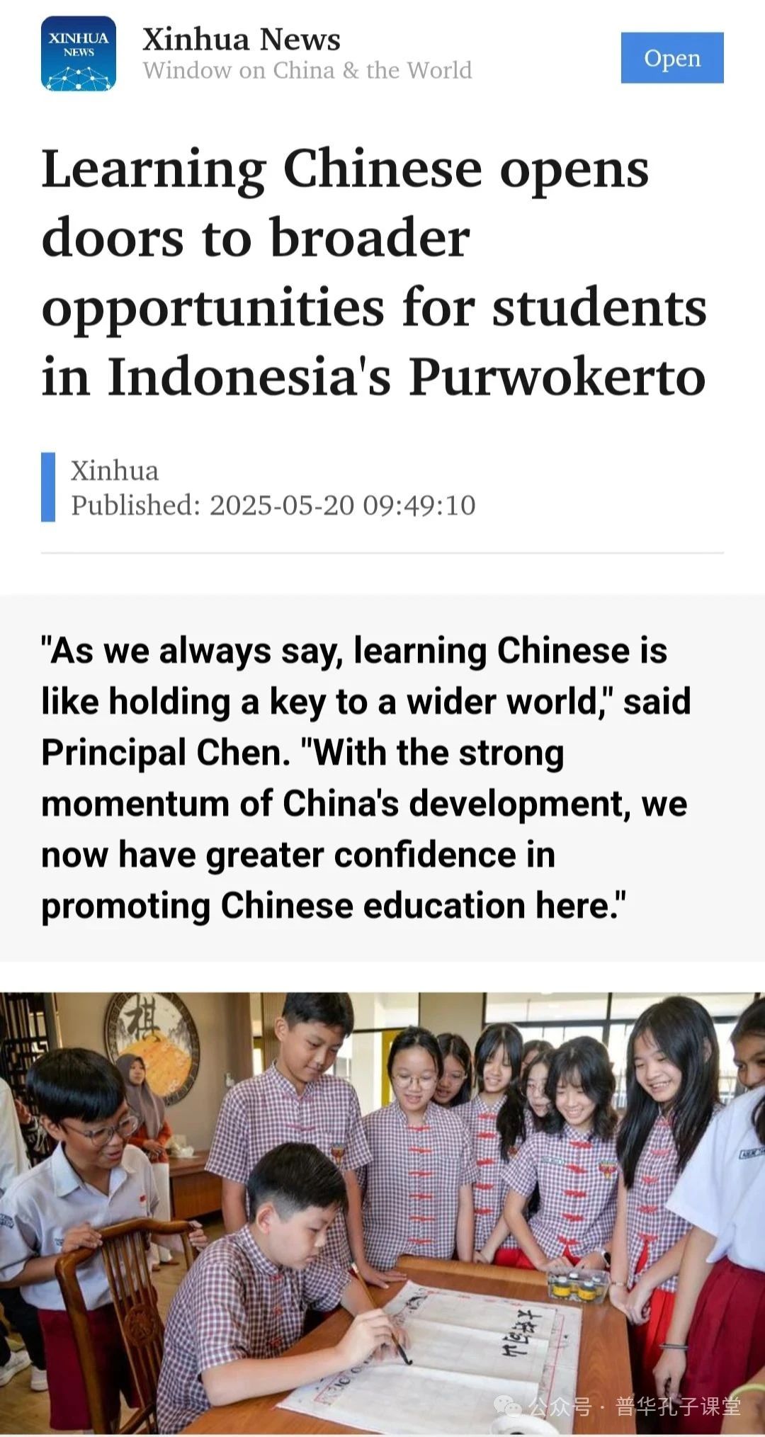 普华三语学校孔子课堂成立后,通过各类文化活动的开展,使印尼学子在学习中文的同时对中国传统文化产生了浓厚兴趣,也将有助于“中文+职业技能”的人才培养。文章指出,在多方合作和政策的持续推动下,印尼中文教育正在不断拓展,更多印尼学生得以通过中文走向更广阔的未来。